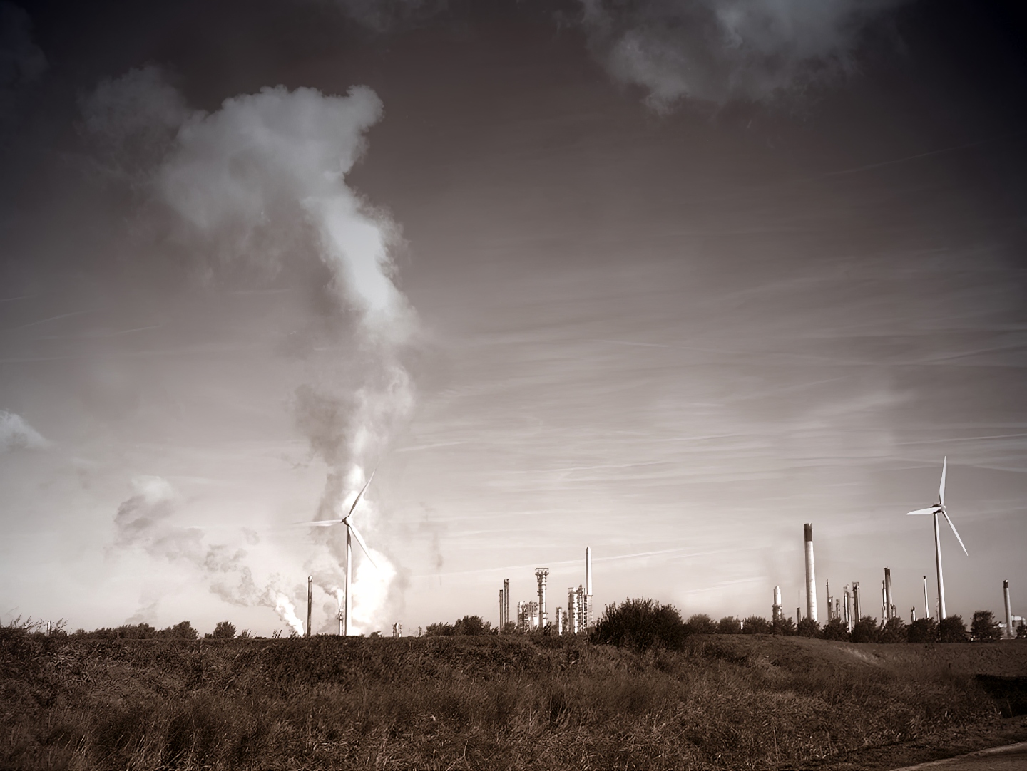 Maar ook te midden van industriële schoonheid (tweemaal Pernis; elk met een ander filter. Dreiging en lieflijkheid bepaald door een Photoshop-plugin-dingetje.