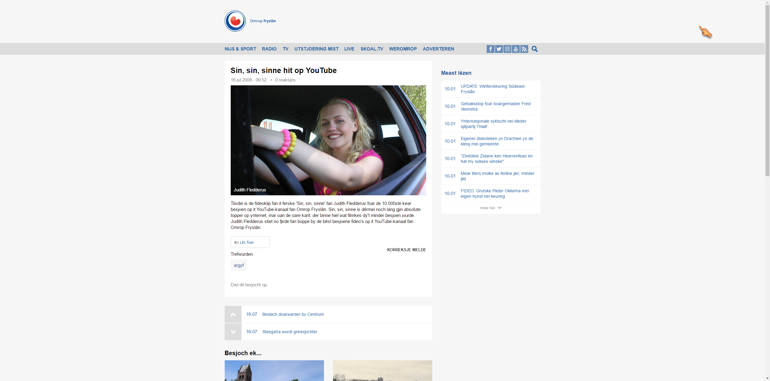 Famke Fledderus is, as (kantsjeboart) winnares fan de Fryske Idols ('Sjong' hjit dat dèr, as ik mij net fersin) bereidwillig fûn om foar Omrop Fryslan (spiegeltsje) it Simmerliet fan 2008 te sjongen.