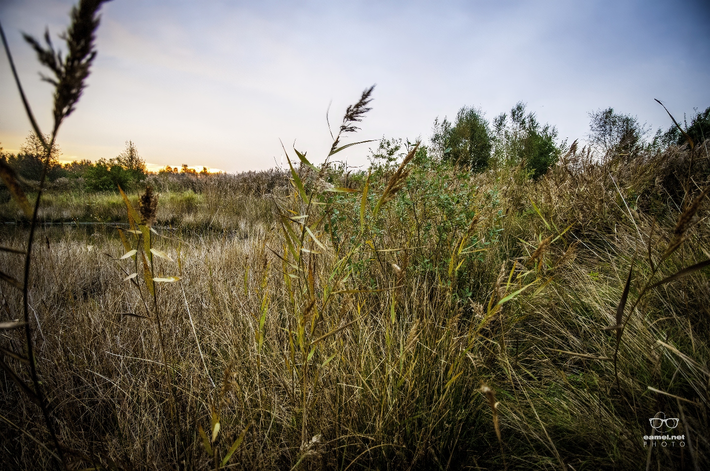 En aldus geschiedde; 07.37 uur, zonsopkomst, stond ik daar, alleen, tussen 't riet, een kluit ooievaars, een gefragmenteerde waterplas en wat verdwaalde konijnen.