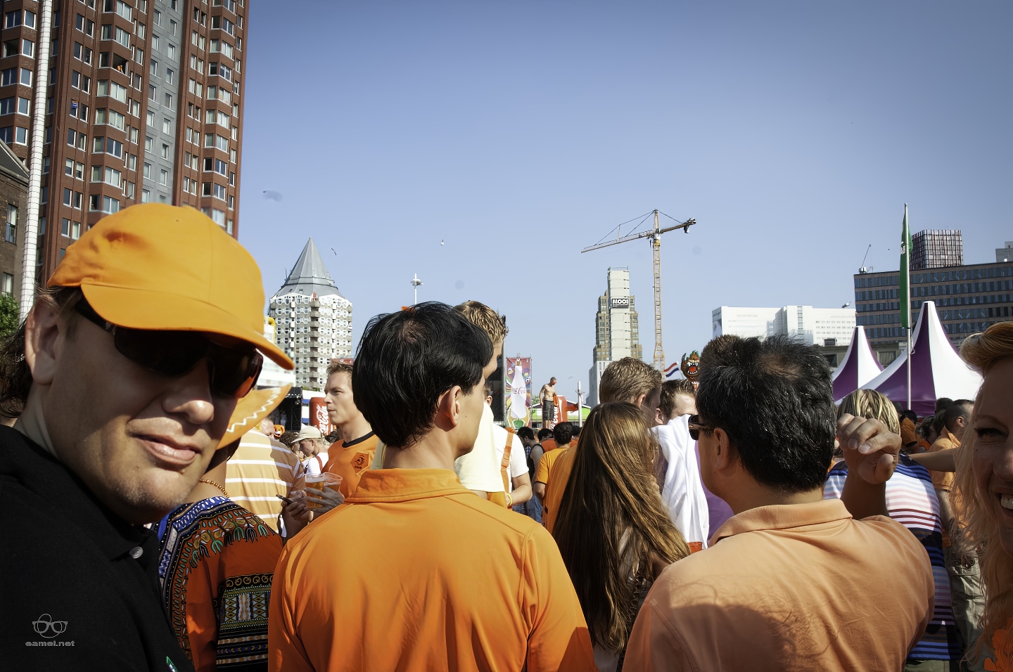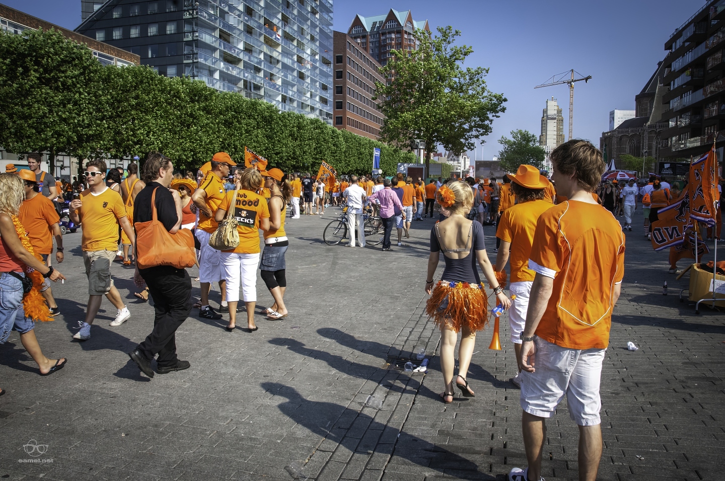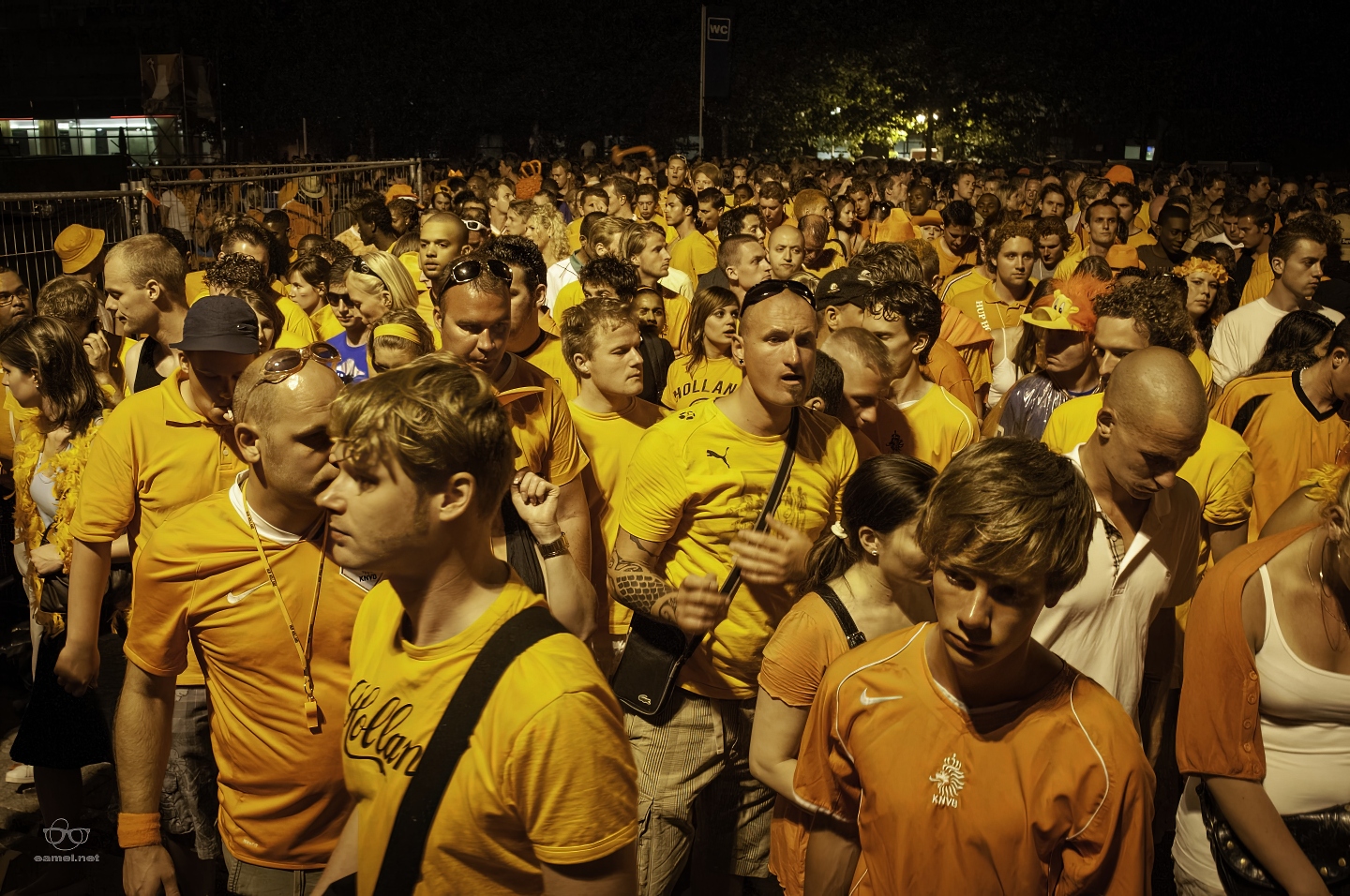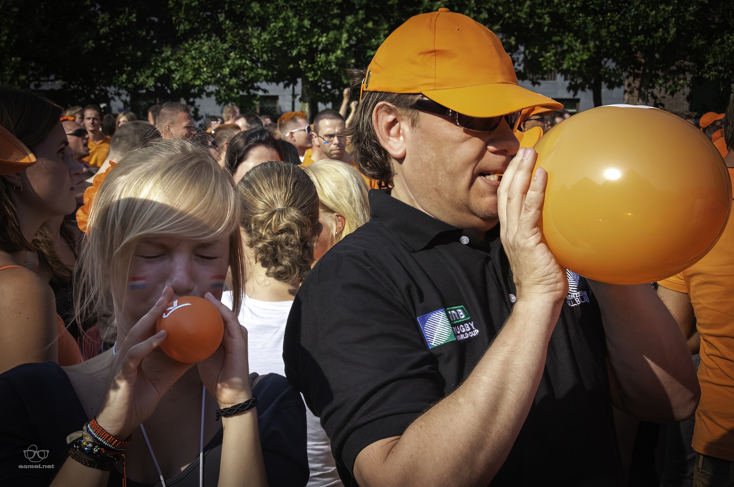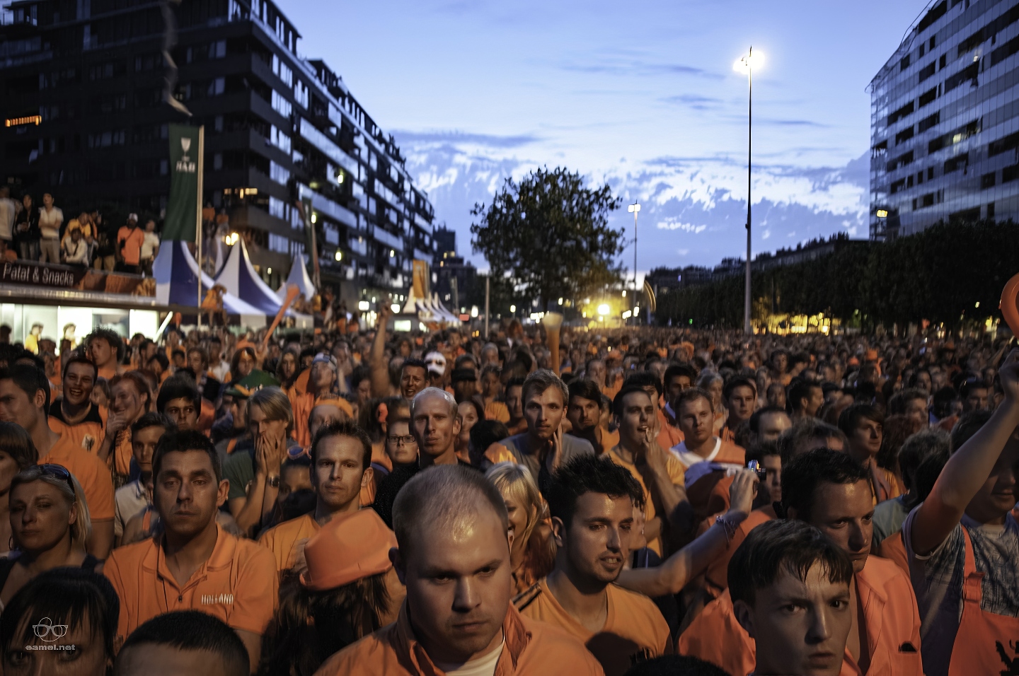 Een nog volledig in gelukzalige onwetendheid verkerende overmacht van 17.500 man/vrouw deed waar 't goed in was: feesten, sfeer, zingen en dansen. Geen onvertogen woord, noch zinvol- noch zinloos geweld en, op een enkele blauwe na, allemaal in 't Oranje.