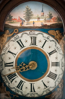 Na vier en half jaar jaar in mijn bezit te zijn geweest en talloze, vruchteloze pogingen om 'm aan de praat te hengelen, krijgt 't antieke uurwerk een spontane oprisping. Ik haal de beschermkap er nog even af, misschien zijn westerse muizen actiever dan die in de rest van land, maar nee; de klepel klepelt toch écht hélemaal uit 'm zelf. Tellen kan ie nog steeds niet, vijf keer bim-bam om acht uur, maar tikken inmiddels wel.
