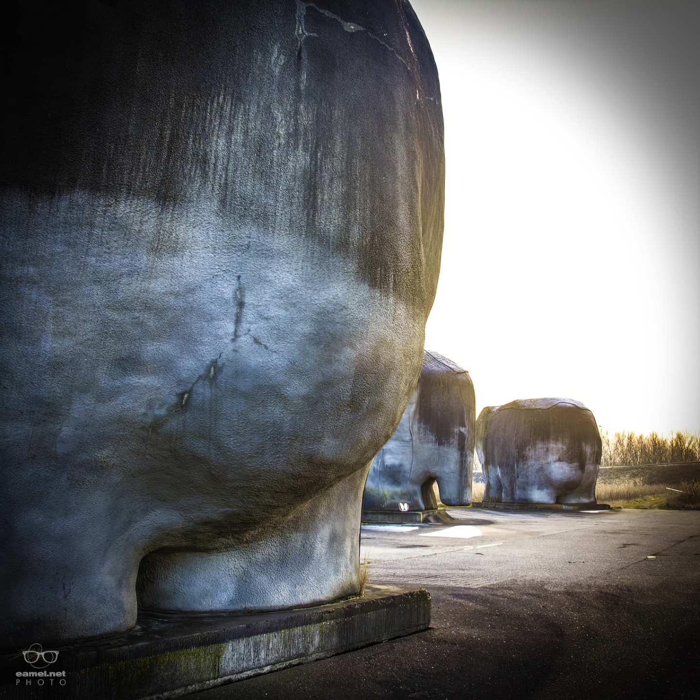 Het kunstwerk bestaat uit vijf olifanten, is gemaakt door ene Tom Claassen, heeft verder geen diepere betekenis, is een keer verbrand, tweemaal ondergespoten ondanks een anti-graffiti laag en het beton moet een slurf en slagtanden ontberen.