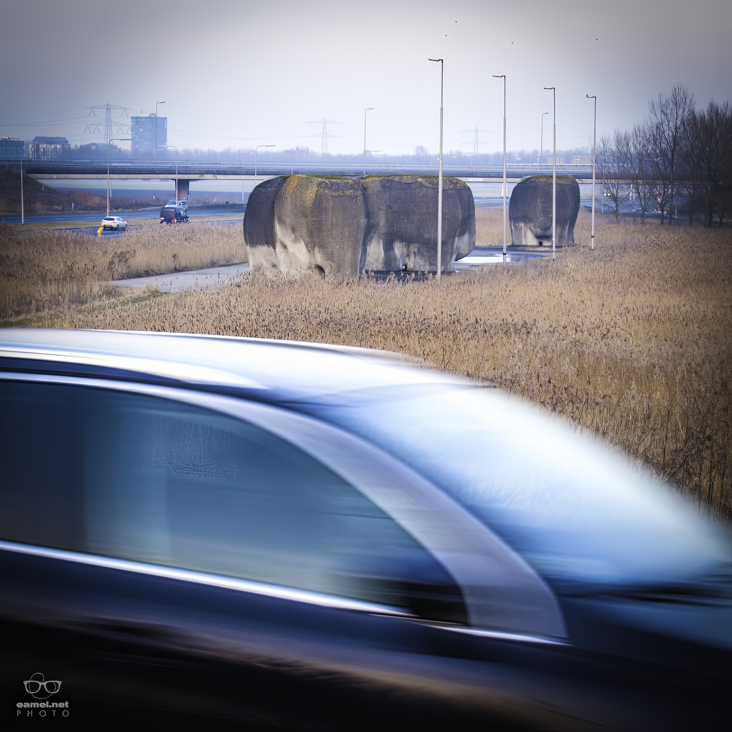 Daar valt vrij weinig over te vertellen behalve dan dat het niet de mooiste snelwegkunst is die ik ooit heb gezien, vooral niet van dichtbij, en dat de kunstenaar in eerste instantie een ander object wilde plaatsen met de naam 'Auto In Vangrail' maar dat Rijkswaterstaat zich daar niet in kon vinden. Zó gek.