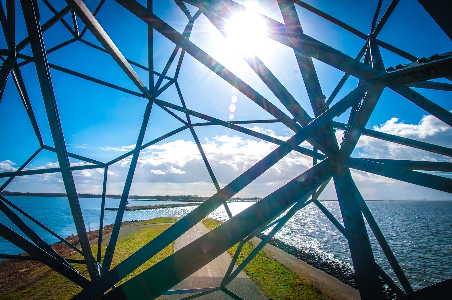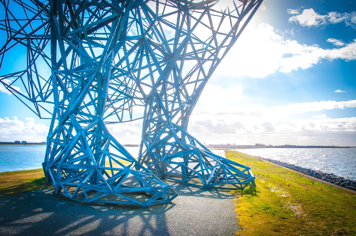 Deze ijzeren meneer bevindt zich overigens niet écht langs de A6. Sterker nog; hij zit in al z'n eenzaamheid z'n gevoeg te doen, heulemaal aan de andere kant van Lelystad, op een strekdam van de Houtribdijk, je weet wel; die dijk naar Enkhuizen.
